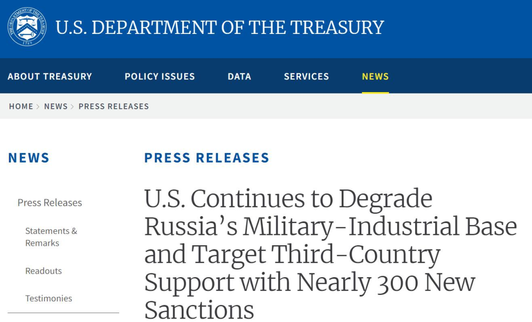 当地时间5月1日,根据美国财政部网站发布的新闻稿,美国财政部和国务院总计瞄准近300个制裁目标,“针对的是俄罗斯军事工业基地、化学和生物武器项目,以及帮助俄罗斯获取武器或国防相关生产关键投入的第三国公司和个人”。